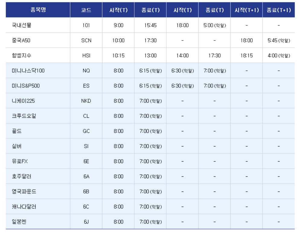 단, 해외선물은 23시간 운영이 됩니다. 즉, 수익의 기회도 23시간 내내 열려있다는 의미입니다.